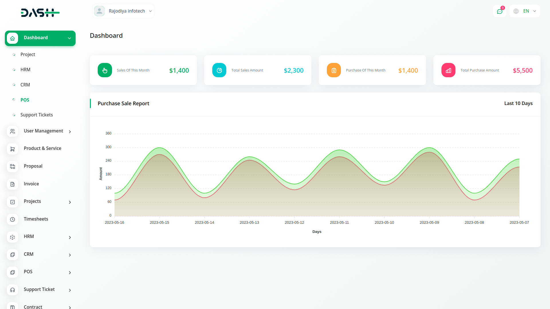 POS allows you to keep a tab on the total as well as the monthly amounts of sales and purchases. The interactive purchase sales report graph allows you to make informed decisions. You would receive notifications on the dashboard if products reach the minimum quantity.